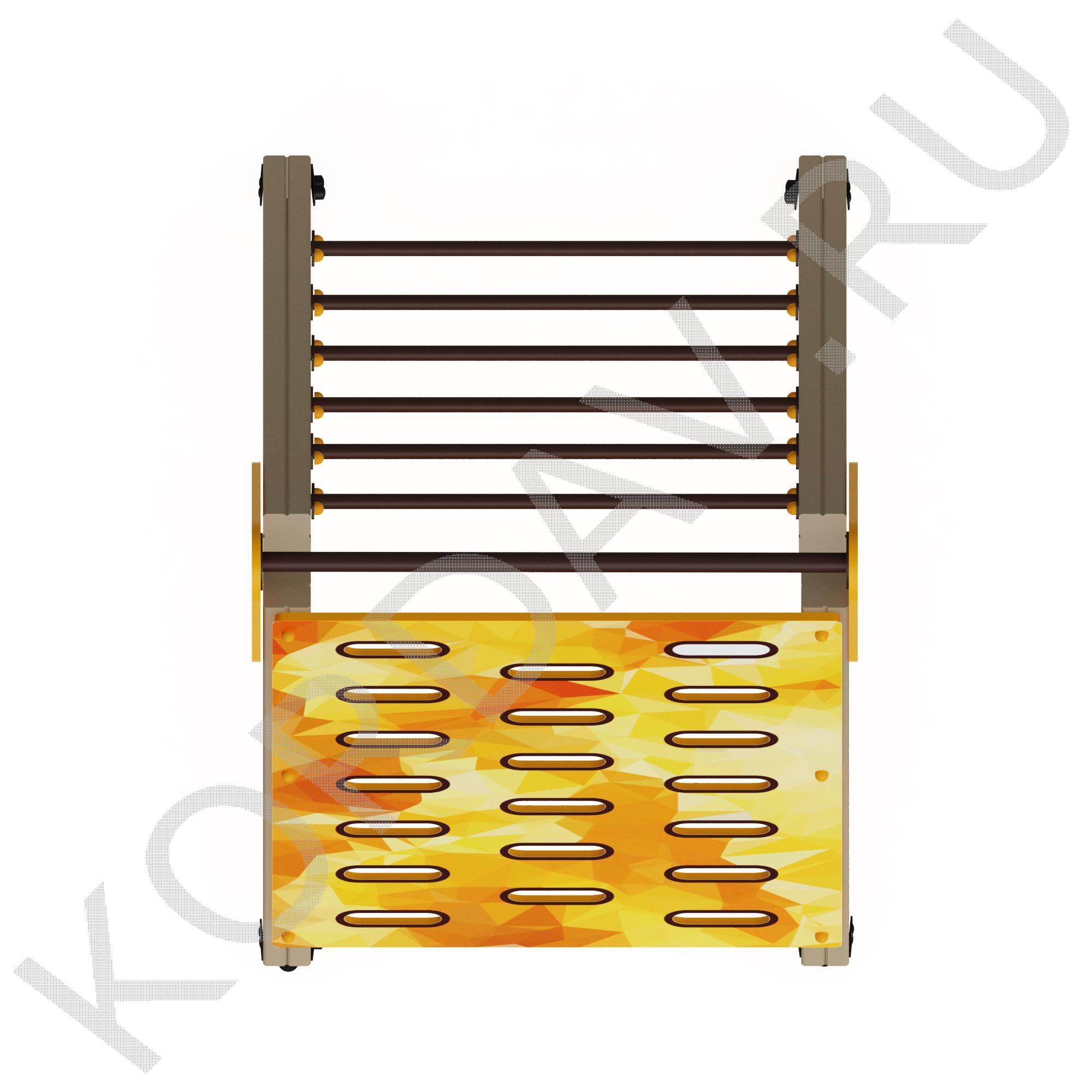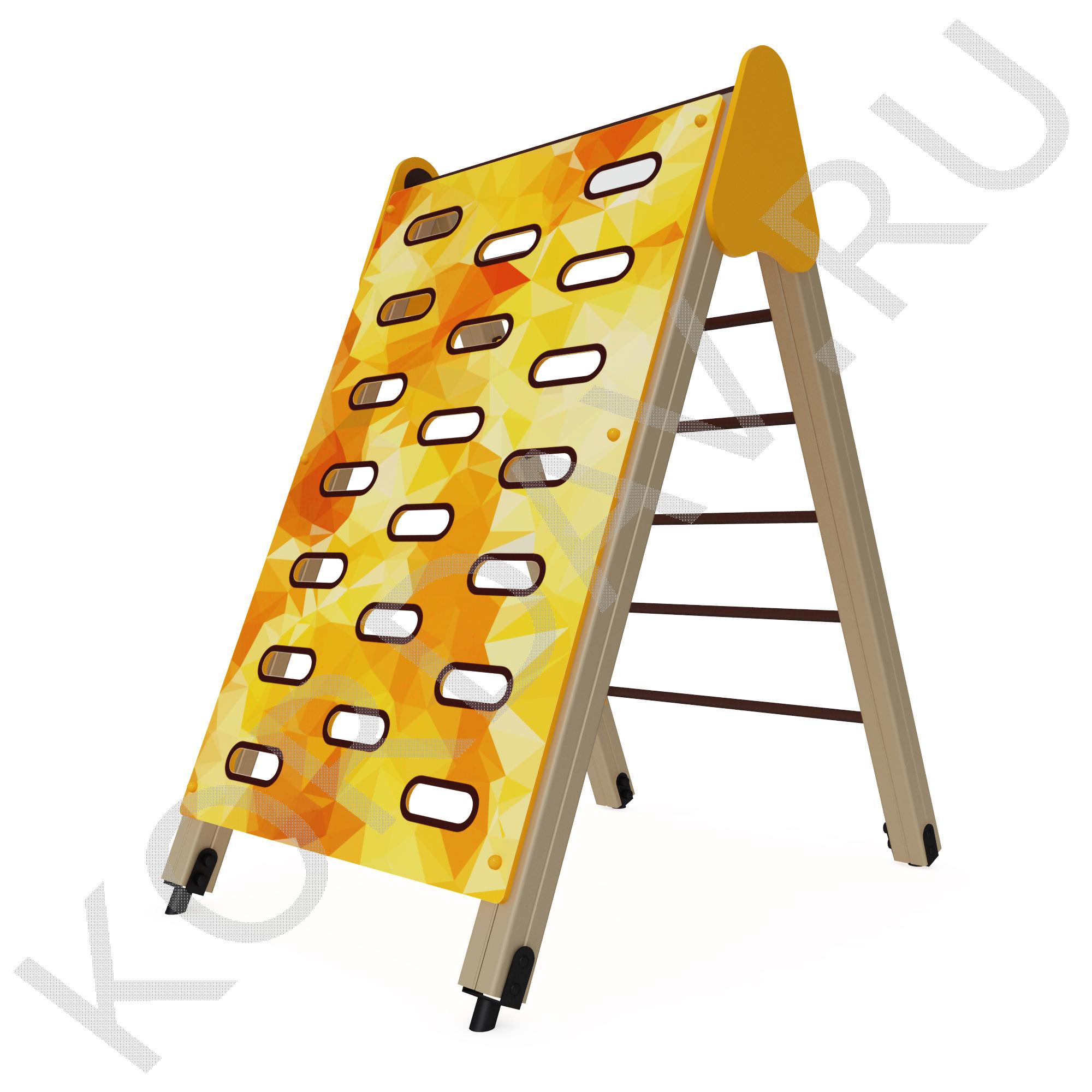 Стенка для перелезания – панель прямоугольной формы, которая закреплена двумя стойками парного типа. Она имеет двадцать полукруглых прорезей, очень удобных для ног. Стенка помогает детям развить ловкость и координацию, а также учит преодолевать препятствия. Ею могут пользоваться малыши возрастом от 3 лет. Благодаря небольшой высоте, ею пользоваться безопасно. Все детали защищены специальным покрытием, и устойчивы к износу и негативным внешним явлениям.