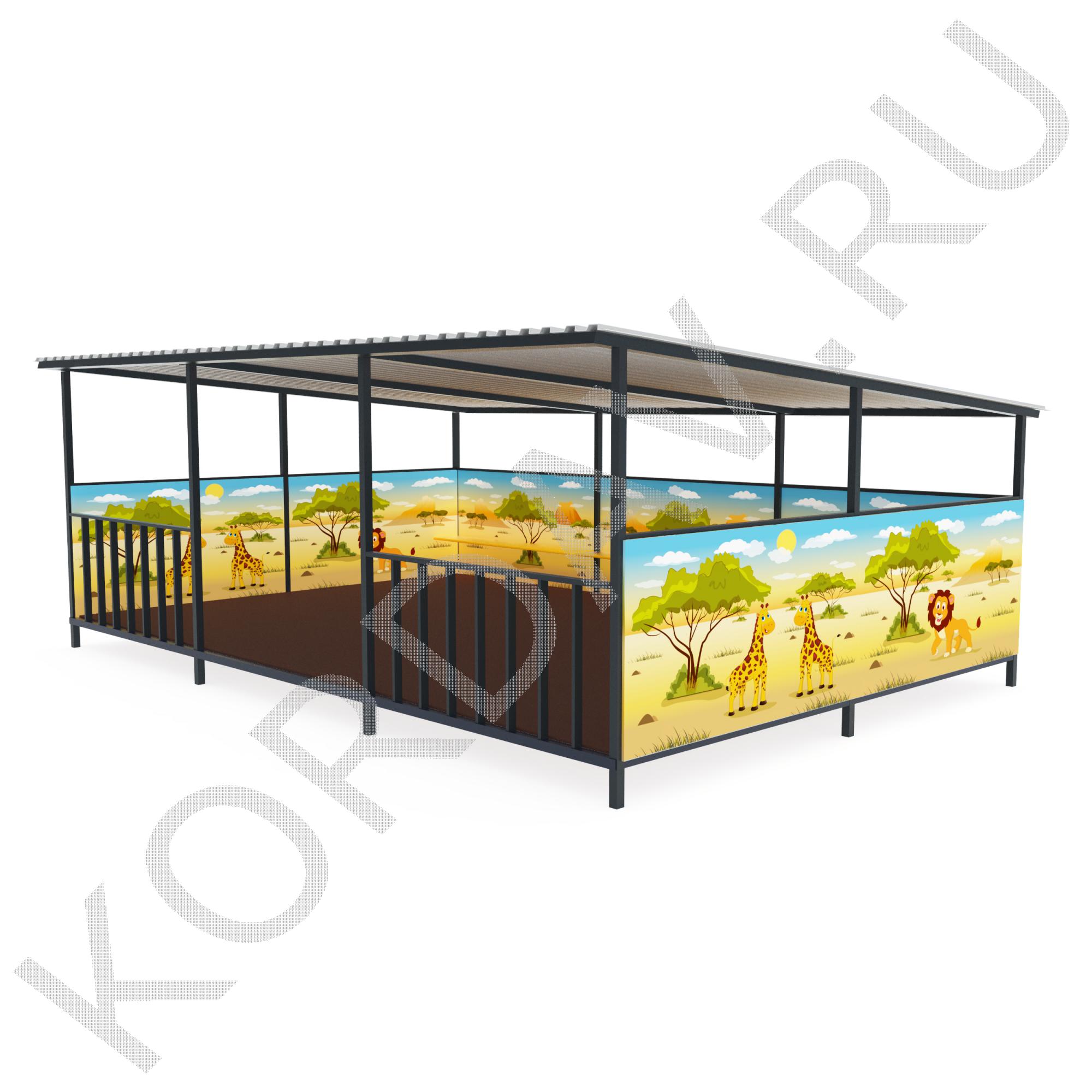 Теневой навес предназначен для установки на детских игровых площадках. Он является полностью разборной конструкцией, которая устанавливается с использованием резьбовых соединений. В собранном виде теневой навес представляет собой пространственную конструкцию в форме домика с односкатной крышей.